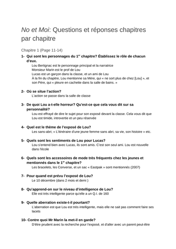 Et Tes Parents Ils Font Quoi. no et moi comprehension questions with answers chapter per chapter teaching resources
